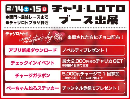 2/12(木)13(金)15(日) 第8R発売中 13:55頃〜 2/14(土) 第7R発売中 13:35頃〜 |