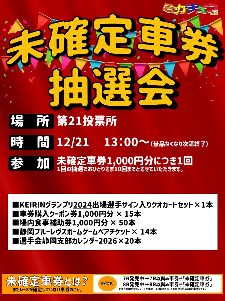 【12月21日】未確定車券抽選会のおしらせ